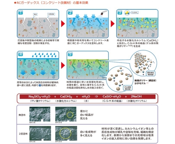弊社の取引先であるコンクリート改質材の販売及び施工を行う日本躯体処理株式会社(本社:埼玉県川口市)の製品(RCガーデックス)の取り扱いを開始しました。
